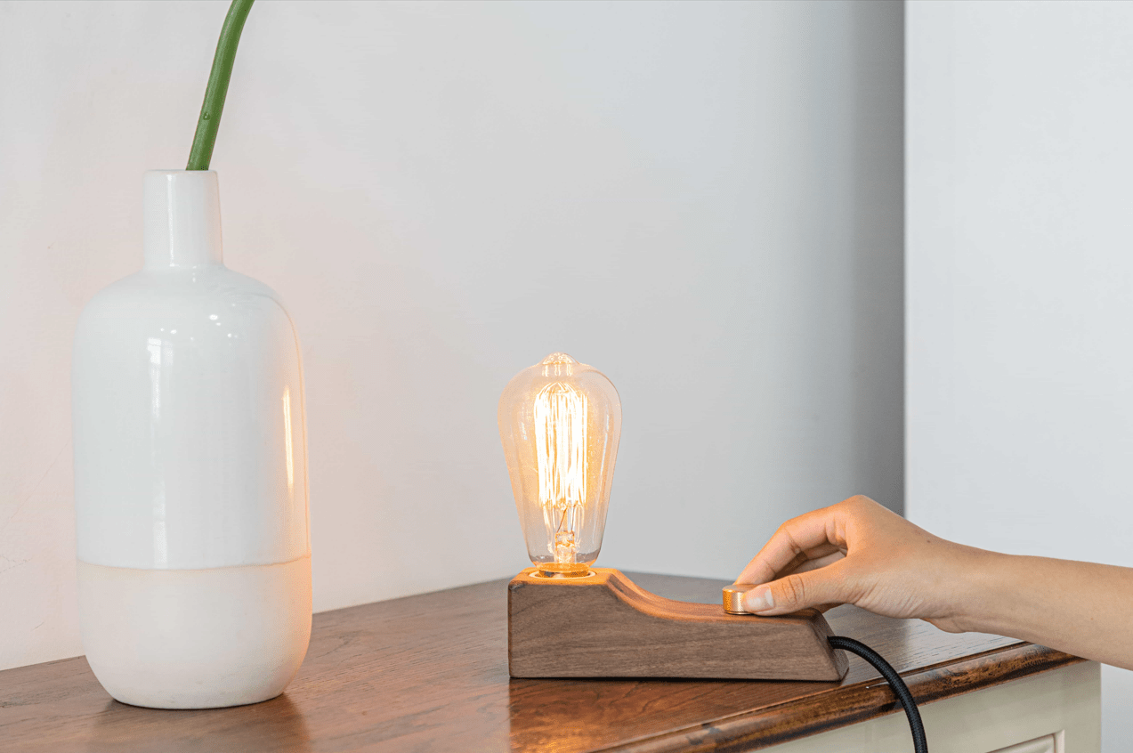 *Mô tả: Đèn Curving Wooden có thiết kế nhỏ gọn, độc đáo và thanh lịch với đế đèn làm từ gỗ sồi được chế tác vô cùng tỉ mỉ. Đèn chế tác mỏng, cong uyển chuyển tạo nên nét nhẹ nhàng, đầy sức hút. Đế đèn có gắn tag làm từ đồng thau trên đó số được dập thủ công thể hiện cho thứ tự của đèn trong giới hạn 1000 chiếc được sản xuất. Dimmer chỉnh độ sáng được lắp đặt nằm trên thân đèn giúp người dùng thuận tiện sử dụng. Hãy đặt Curving Lamp ở nơi yêu thích và thư giãn dưới ánh đèn vàng ấm áp sau một ngày dài mệt mỏi.