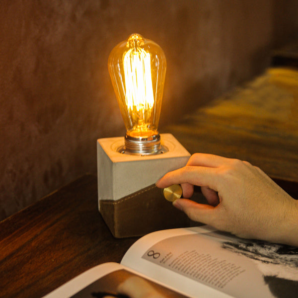 *Mô tả: Đèn Fusion Lamp được thiết kết tinh tế và nhỏ gọn, bao gồm bóng đèn dây tóc cổ điển Edison, chân đèn được thiết kế bằng xi măng nguyên khối được đính kèm với một mảng da sáp, kèm dây đèn có nút điều chỉnh ánh sáng tuỳ ý. Hãy đặt Fusion Lamp ở một góc yêu thích và tận hưởng những phút giây yên tĩnh, thư giãn bên ánh đèn vàng ấm áp.