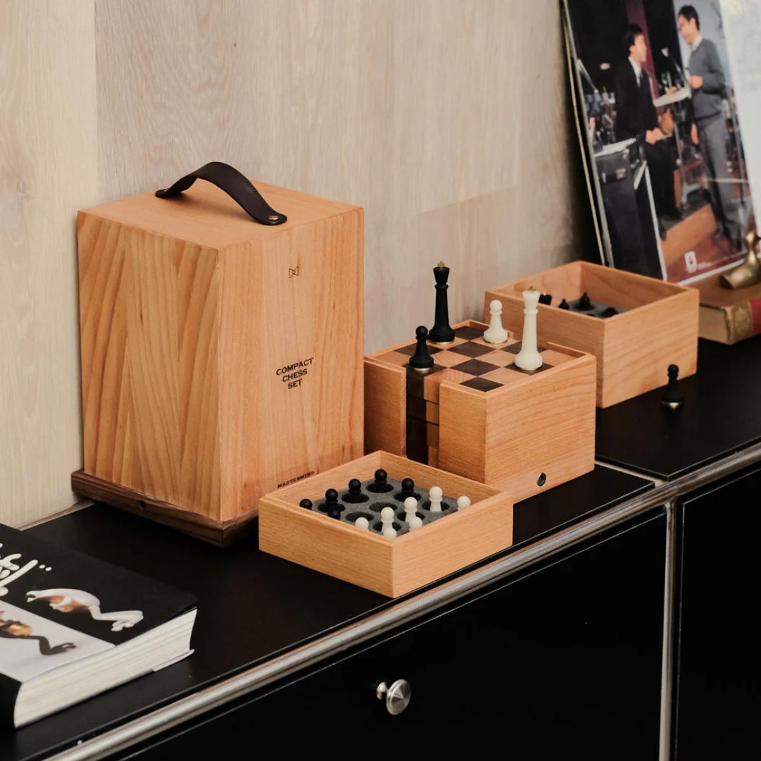 Được đựng trong một hộp gỗ beech thủ công tinh xảo, Nomad_The Portable Chess Set là hiện thân của sự khéo léo trong chế tác, là món quà hoàn hảo dành tặng người thân yêu. Như một lời hứa cho những chuyến phiêu lưu phía trước, bộ cờ này mang đến những khoảnh khắc giải trí và kết nối khó quên trong mỗi buổi tụ tập bạn bè và gia đình, dù bạn ở bất kỳ đâu.